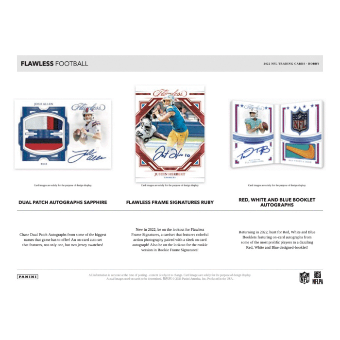 – New in 2022, be on the lookout for Flawless Frame Signatures, a cardset that features colorful action photography paired with a sleek on card autograph!