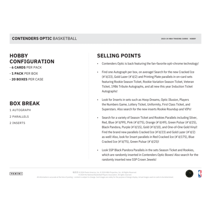 2023/24 Panini Contenders Optic Basketball Hobby Box