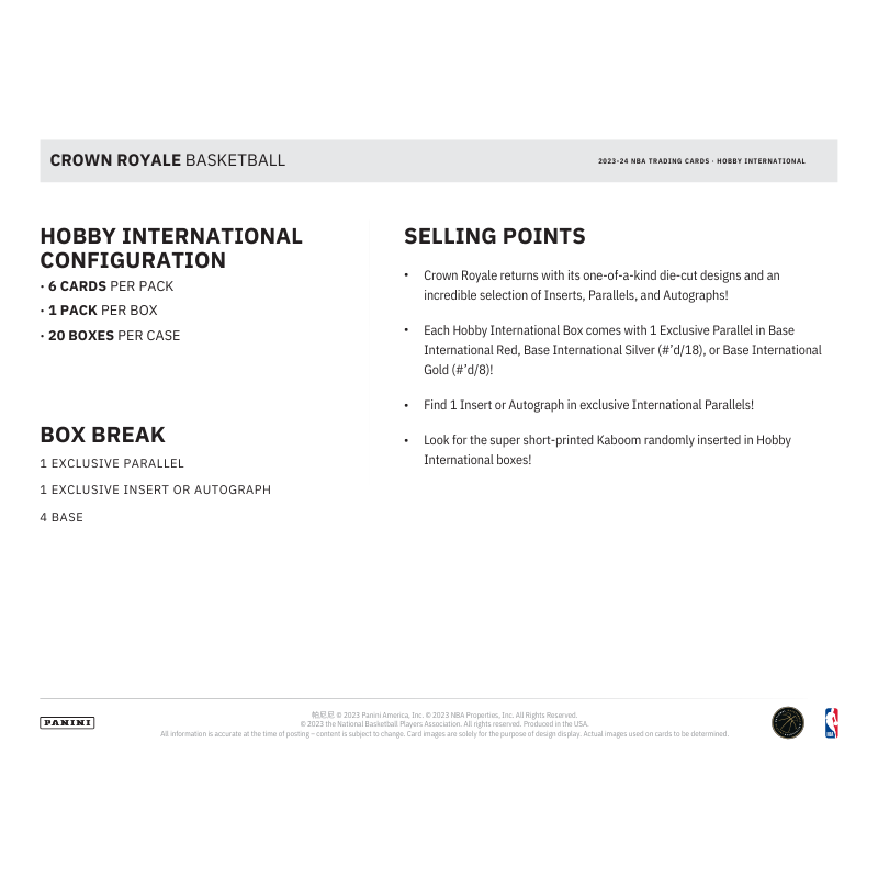 2023/24 Panini Crown Royale Basketball International Hobby Box