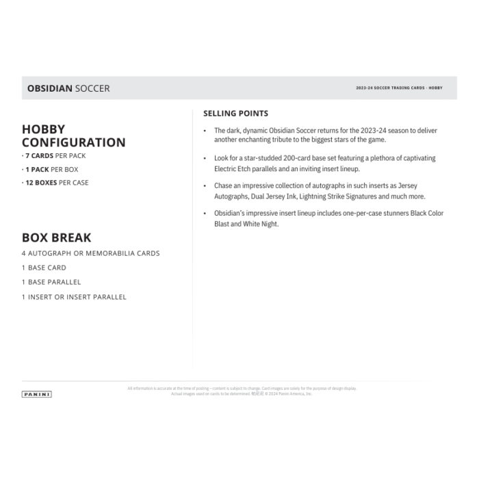 2023/24 Panini Obsidian Soccer Hobby 12 Box Case Original price was: $5,357.99.Current price is: $2,819.97.