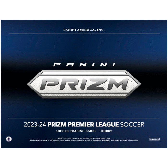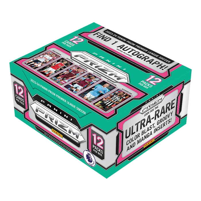 The season’s international sensation is back with the 2023/24 Panini Prizm EPL Soccer Hobby Case! Averaging 12 autos, brace yourself for an autograph extravaganza, showcasing legends, current stars, and future greats in an array of unique inserts – it’s soccer card collecting at its finest!