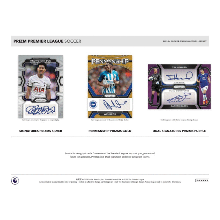 – Search for autograph cards from some of the Premier League’s top stars past, present and future in Signatures, Penmanship, Dual Signatures and more autograph inserts.