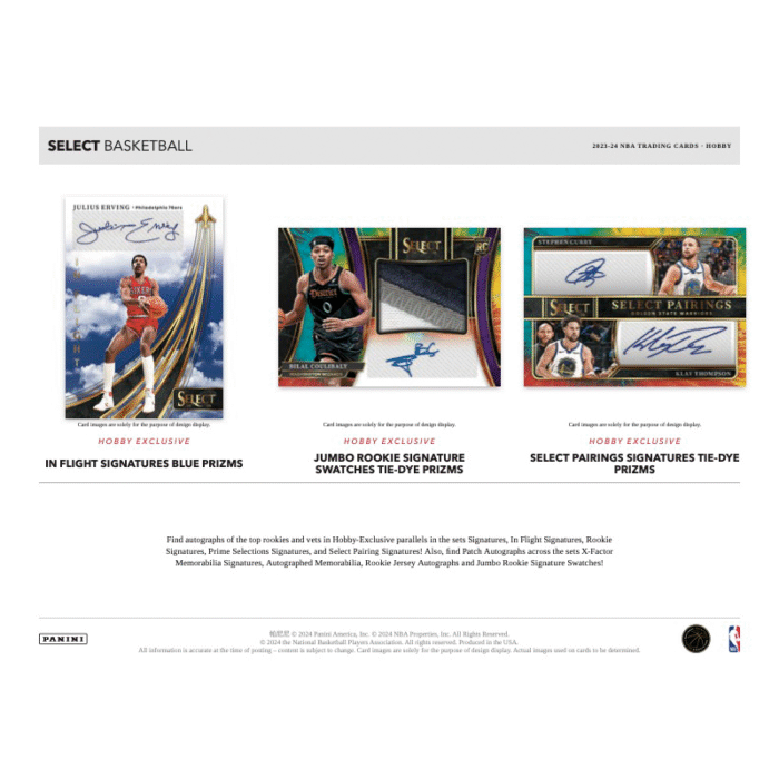 Get ready to hit the court with the one of the most anticipated releases of the year – the 2023/24 Panini Select Basketball Hobby Box! Each box packed with the top rookie cards, colorful parallels, and exclusive inserts that capture the excitement of the game. Whether you’re a seasoned collector or just starting out, this box is your ticket to basketball card greatness.