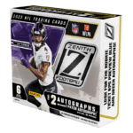 Elevate your football card game with the 2023 Panini Zenith Football Hobby Box. This box is a football fiesta, bursting with high-energy cards and jaw-dropping inserts. Score big with unique Zenith features, including Dare to Tear inserts, Z-Team showcases, and eye-popping Rookie Autographs.