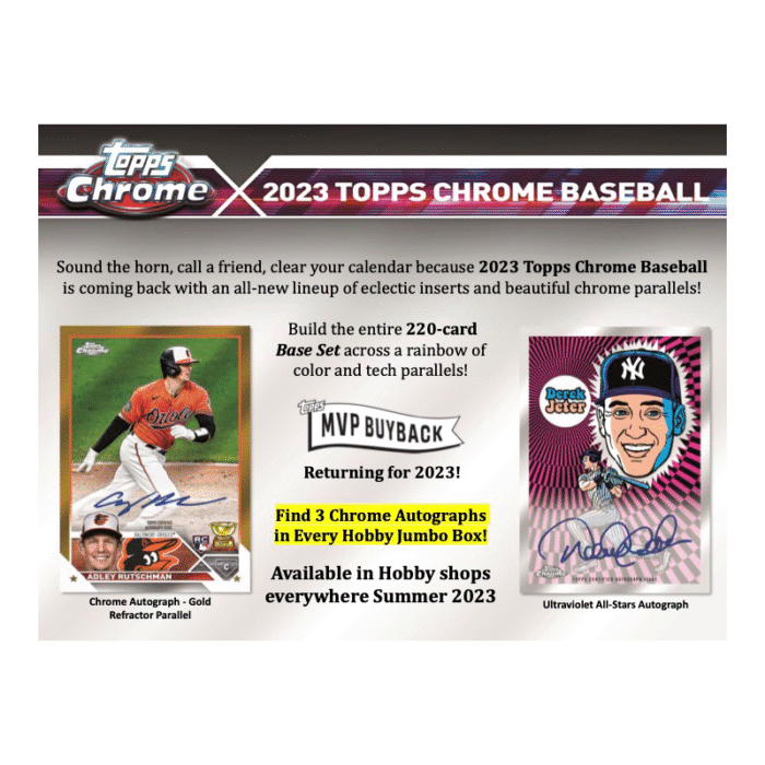 • For passionate MLB fans and collectors, there are very few things that can compare to opening a 2023 Topps Chrome Baseball Jumbo Case!