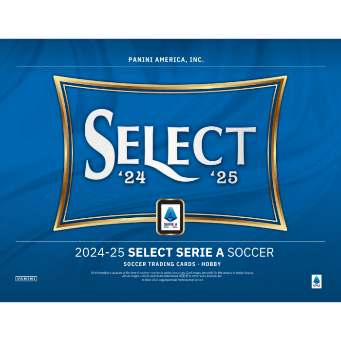 The 2024/25 Panini Select Serie A Soccer Hobby 12 Box Case delivers a premium collecting experience for fans of Italy’s top football league. Featuring a stunning mix of base cards, parallels, and autographs. Collectors can chase rare inserts, numbered Prizms, and on-card autographs from elite players. With multiple levels of base card designs—Terrace, Mezzanine, and Field Level—this product offers an exciting variety for every soccer enthusiast. Whether you’re building your collection or hunting for exclusive hits, Select Serie A is a must-have for any fan of Italian football!