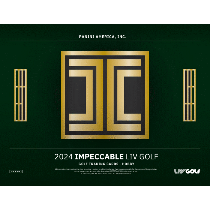 The 2024 Panini Impeccable LIV Golf Hobby 3 Box Case is a premium trading card release celebrating the LIV Golf tour, known for its luxurious design and high-end content. Collectors can anticipate on-card autographs from top LIV Golf athletes, low-numbered parallels, and possibly unique elements like metal cards or cards embedded with precious metals, which are hallmarks of the Impeccable brand. This product is expected to appeal to both golf enthusiasts and high-end card collectors seeking rare and valuable additions to their collections.
