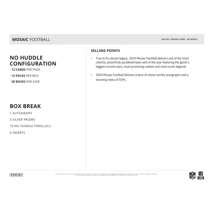 2024 Panini Mosaic Football No Huddle Box Original price was: $398.99.Current price is: $209.97.