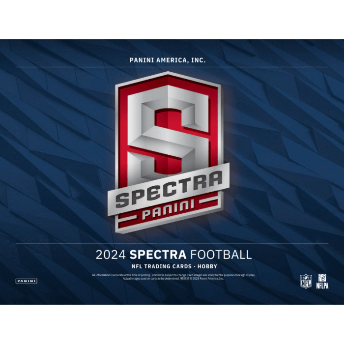 • The dynamic Spectra Football brand has made a name for itself by annually producing some of the most strikingly attactive trading cards in the entire hobby, from its base cards to its autograph cards to its memorabilia cards. But the 2024 edition might just be the best Spectra yet.