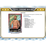 The 2024 Topps Chrome Boxing Hobby Box brings the power of the ring to collectors with a premium chromium finish. Each box highlights today’s biggest boxing stars and legends of the sport, delivering a mix of base cards, colorful refractors, and exclusive parallels. Collectors can also chase down autographs from champions and fan favorites, making this set a knockout addition to any collection. Whether you’re a boxing fan or a Chrome enthusiast, this release packs plenty of excitement and chase-worthy hits.