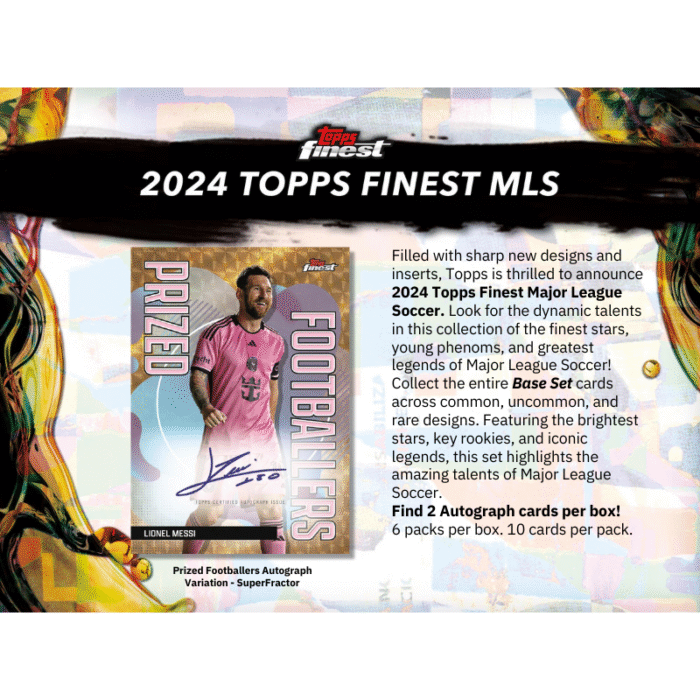• Filled with sharp new designs and inserts, Topps is thrilled to announce 2024 Topps Finest Major League Soccer.