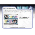 • The highly anticipated Minor League release of the year has arrived! Get ready for 2024 Topps Pro Debut, featuring an exciting new lineup of inserts and an expanded selection of Chrome cards.