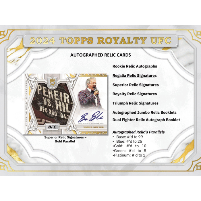 • Making its highly anticipated debut, 2024 Royalty UFC shows up with on-card autograph content that will bring collectors closer to the action.